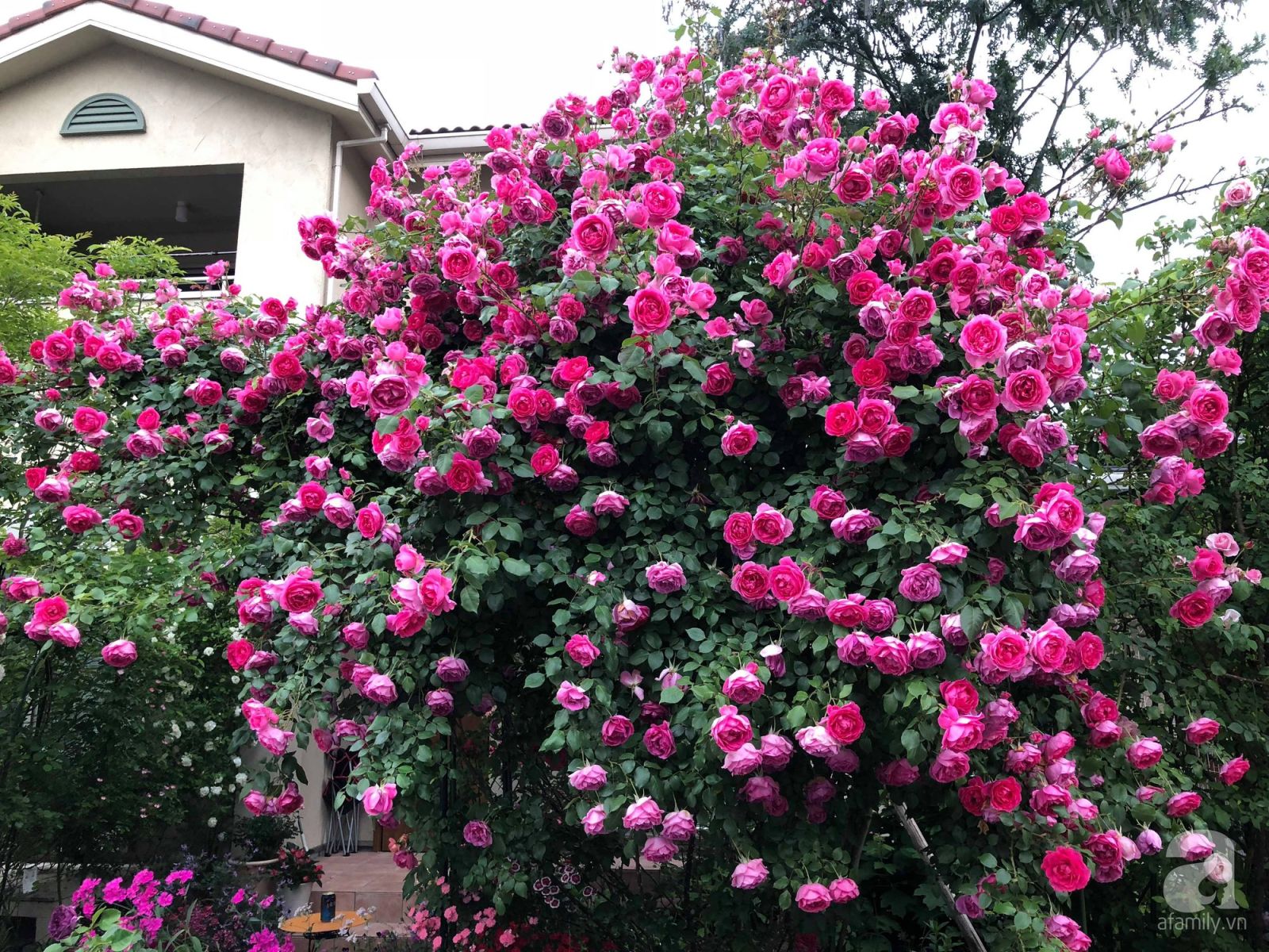 Việc trồng nhiều hoa đan xen nhau trên một không gian chung sẽ tạo nên vườn hoa đầy sắc màu, đi kèm với cỏ cây xanh tươi.