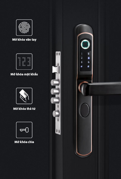 - Sử dụng công nghệ hiện đại với các phương thức mở khóa: vân tay, mã số, thẻ từ, điều khiển từ xa qua smartphone, nhận diện khuôn mặt.