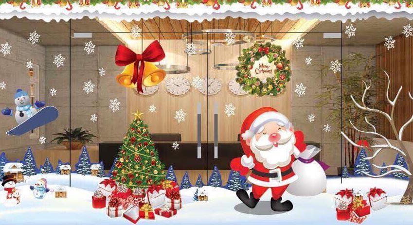 Sử dụng các hình dán bên ngoài, nhất là với cửa kính có thể dùng các decal trong suốt để tạo nên không khí cho mùa Giáng sinh. Đi kèm theo đó là đèn dây, các bông tuyết giả sử dụng giấy hay vải để tạo nên không khí mùa đông tuyết rơi.