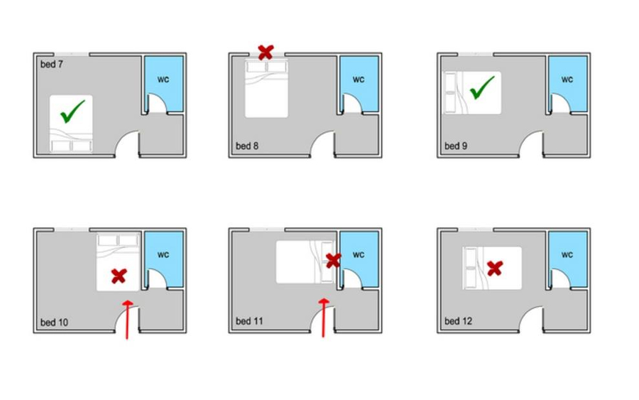 - Không đầu giường sát hoặc dưới cửa sổ (thiếu tựa, gió lùa, mất vượng khí).