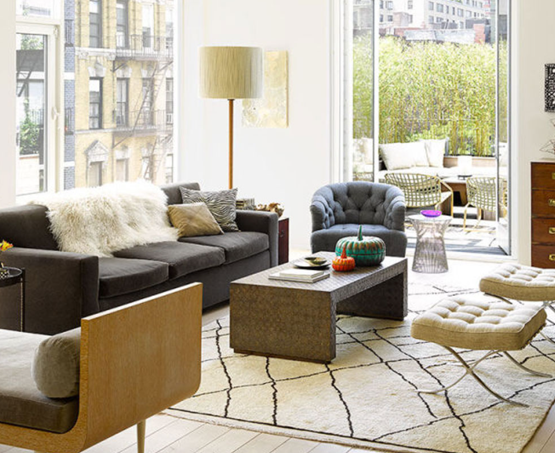 Từ sự hài hòa Âm Dương: chúng ta dùng cho phòng khách – nơi cần nhiều tính Dương như bàn ghế sofa trắng (dương) đi với thảm nâu (tính âm); hay phòng ngủ có tường xanh nhạt mang tính âm, đi với gối đỏ thể hiện tính dương, đồng thời tạo điểm nhấn cho không gian.