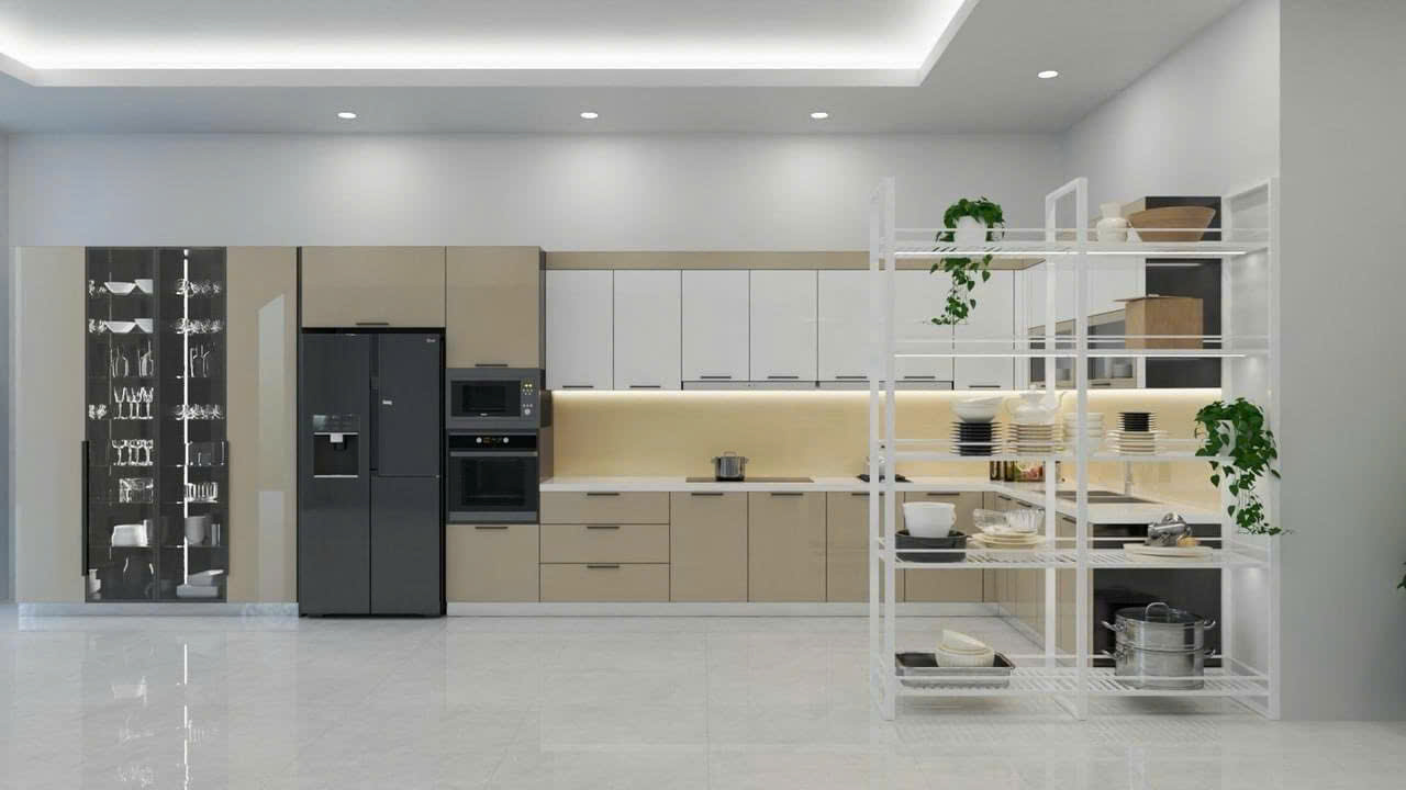 TỦ BẾP CÁNH KÍNH-KÍNH MÀU KEM